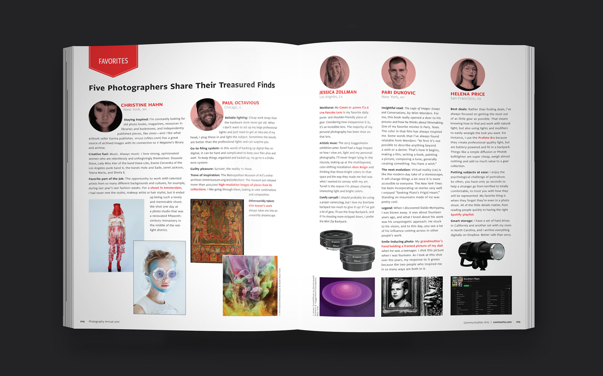 Communication Arts magazine is the leading trade journal for visual communications and the largest creative magazine in the world. Their unique combination of respected juried Annuals in design, advertising, illustration, photography, interactive media and typography; in-depth profiles on designers, photographers, illustrators, design and advertising firms; and numerous informative columns printed with the highest standard of quality makes their magazine the premier publication to cover all aspects of visual communications.